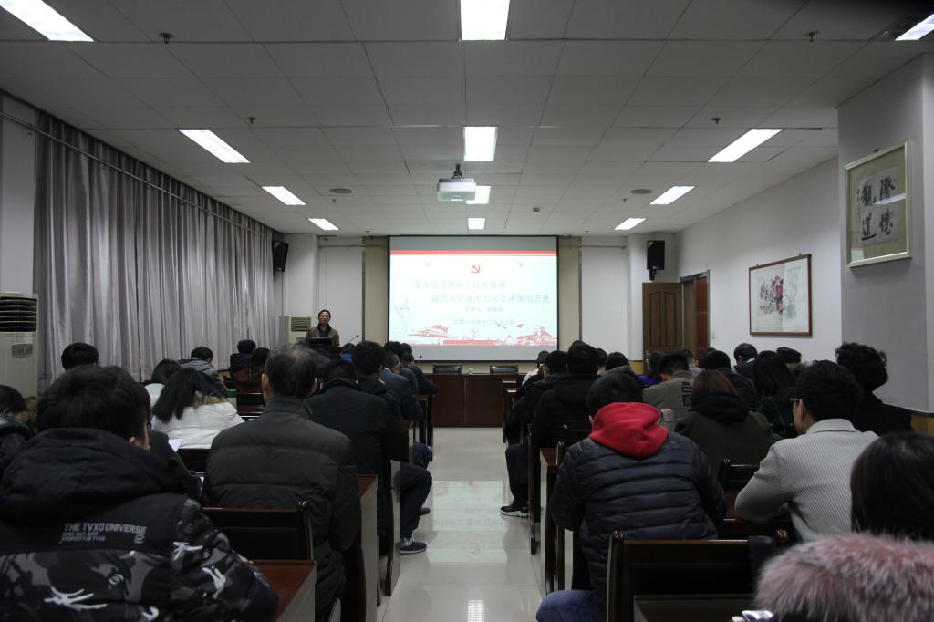 2017年12月13日下午,公路学院党委书记田新民为公路学院机关党支部、创新中心党支部、实训中心党支部和本科生第五党支部的全体党员在交通科技大厦601会议室讲授了题为《深入学习贯彻十九大精神,奋力从交通大国向交通强国迈进》的党课。