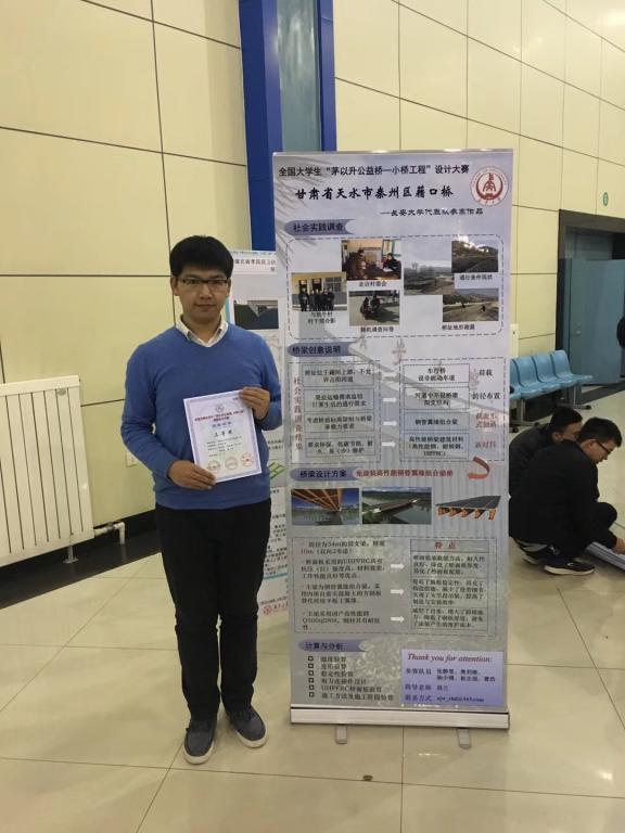 我校公路学院桥梁与隧道工程专业张静雯、奥利维(留学生)、崔志强、杨少博、曹浩5名研究生组成参赛代表队在指导老师段兰的带领下参加了本次大赛。在9日的答辩中,长安大学代表队展示了社会实践调研、桥梁概念设计、设计计算、沙盘模型等系列工作成果。经过激烈的角逐,长安大学代表队最终以三等奖的优异成绩完成了比赛,并获得社会实践奖。